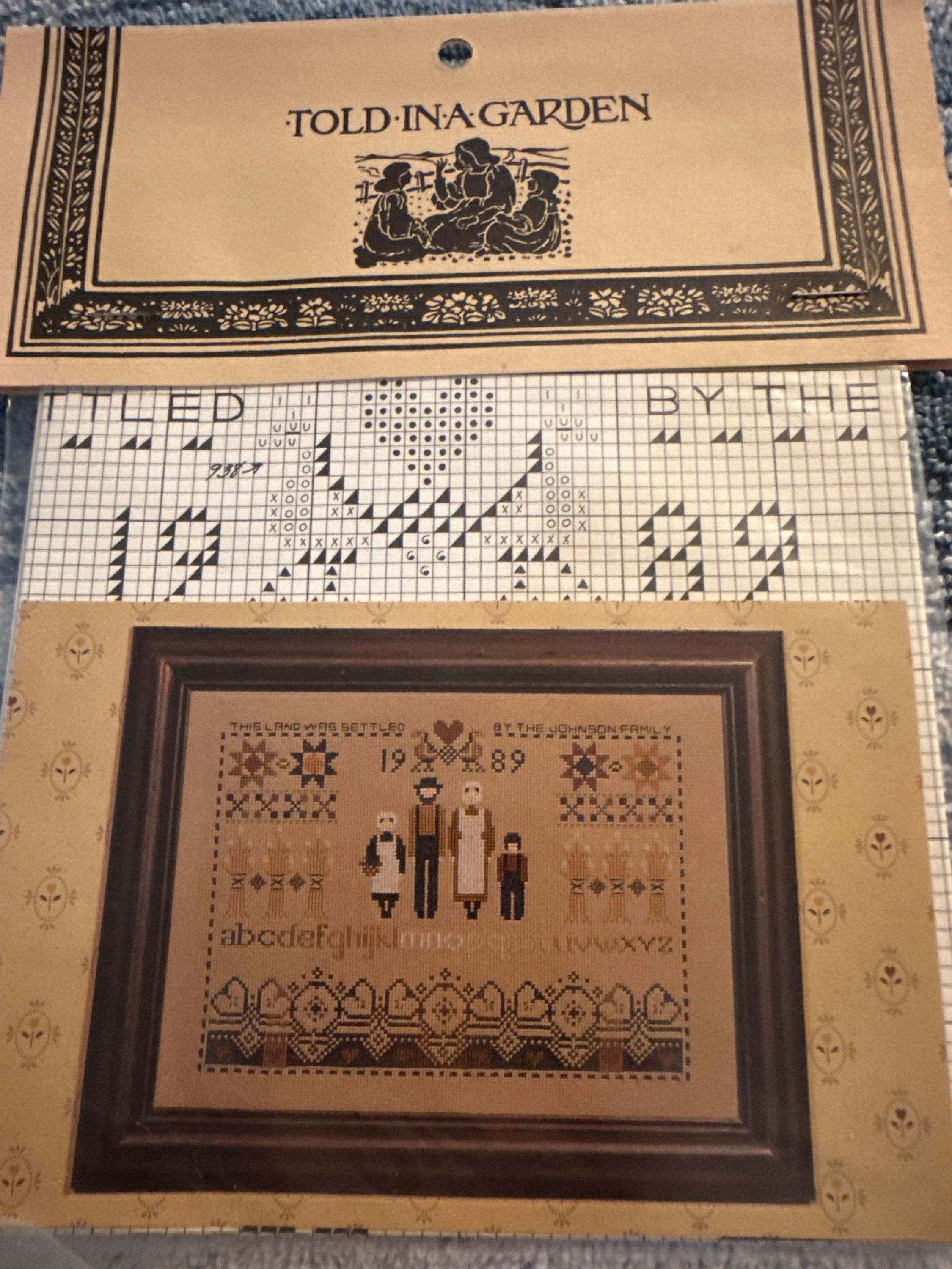 Told In A Garden Settlers Sampler Cross Stitch Pattern. Preowned Condition. Free Shipping.
